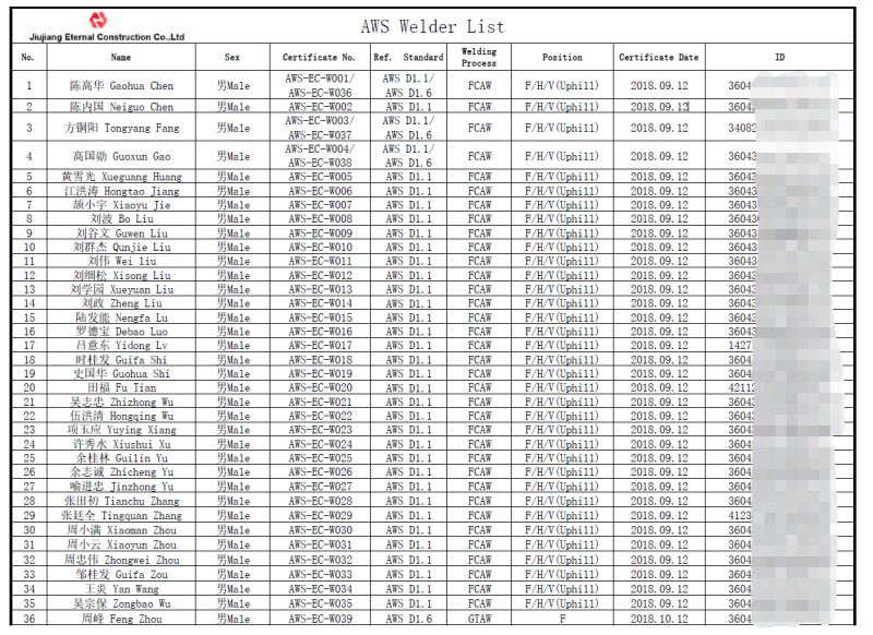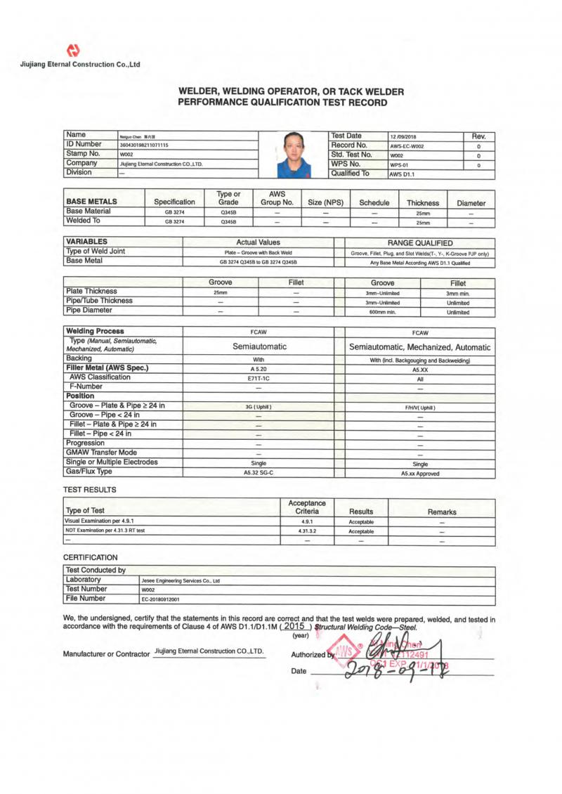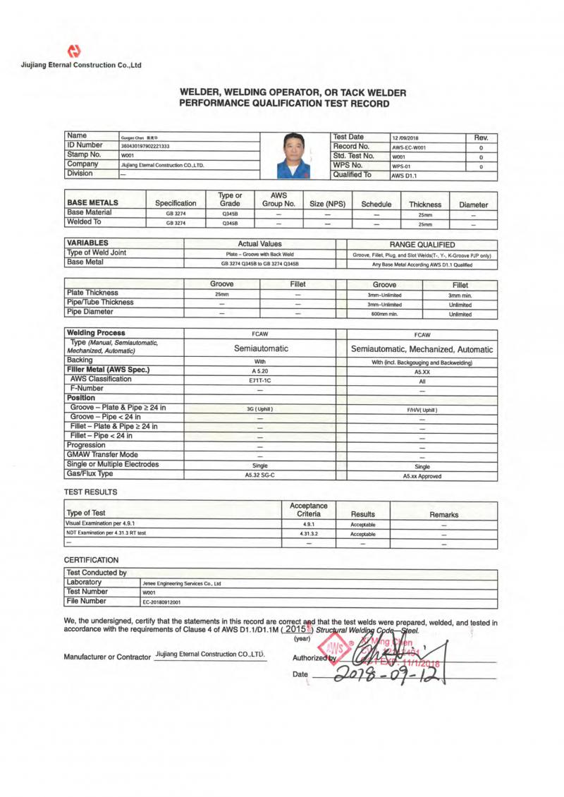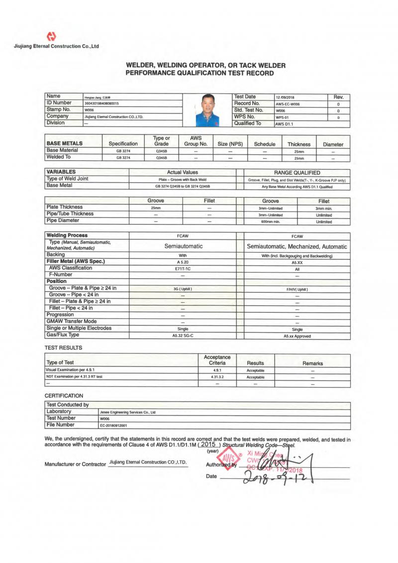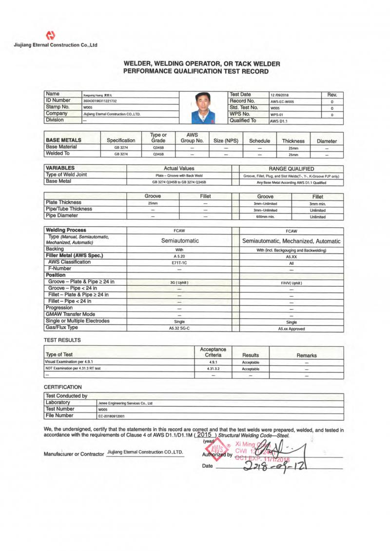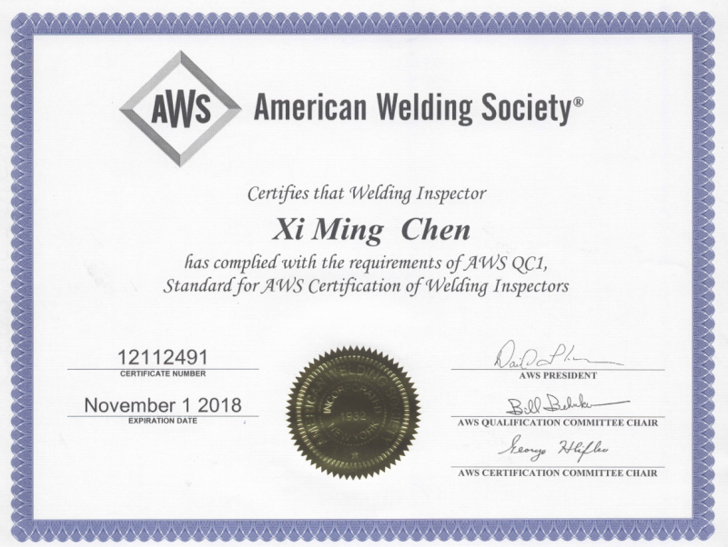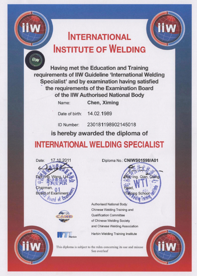 陳喜明CWI證書(shū)